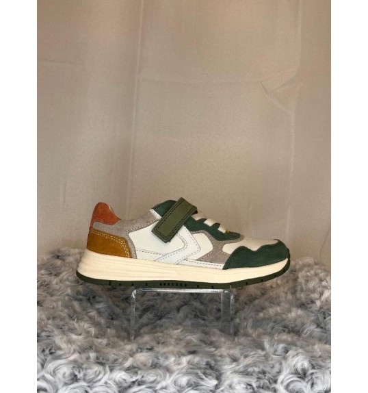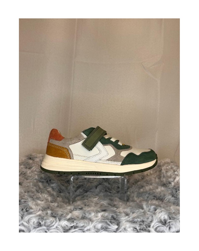 Chaussure basse en cuir fermée avec élastiques et scratch.
